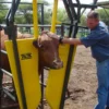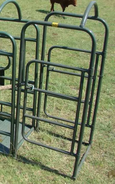 The box gate for the vet clamp is intended to be placed behind the vet clamp or any other clamp, providing the vet or farmer with access to the animal’s rear to carry out veterinary procedures.
