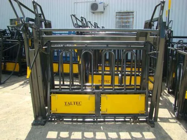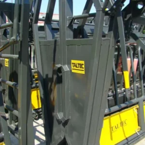 The neck and body clamp securely holds cattle in place, allowing farmers to work efficiently. It provides full access to the animal’s body, making it ideal for branding, dosing, embryo transfer, ear tagging, and foot care. The clamp can be easily adjusted to fit both bulls and small calves. It includes a neck clamp and sliding gate, and can also be used as a scale when paired with the LS4 1000mm loadbar scale. The feedlot neck and body clamp are made from thicker steel and is used in a feedlot setup where you work a thousand cattle a day everyday. And they don’t exceed 350kg.