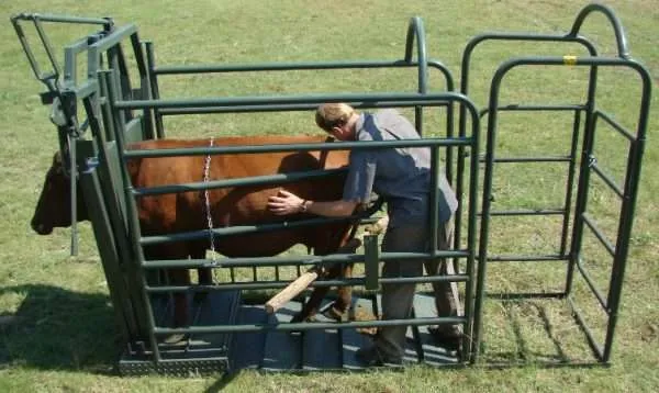The box gate for the vet clamp is intended to be placed behind the vet clamp, providing the vet or farmer with access to the animal’s rear to carry out veterinary procedures.